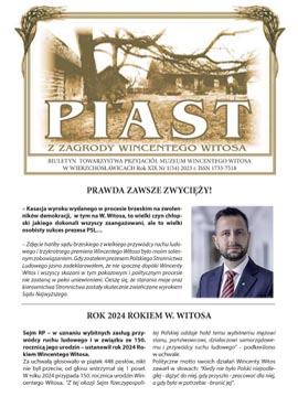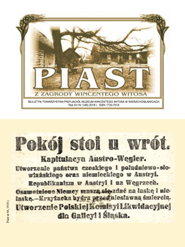 "Piast z zagrody Wincentego Witosa" to Biuletyn Towarzystwa Przyjaciół Muzeum Wincentego Witosa w Wierzchosławicach. Najnowsze numery tego wydawnictwa dostępne są poniżej do ściągnięcia w formie elektronicznej - plików PDF.